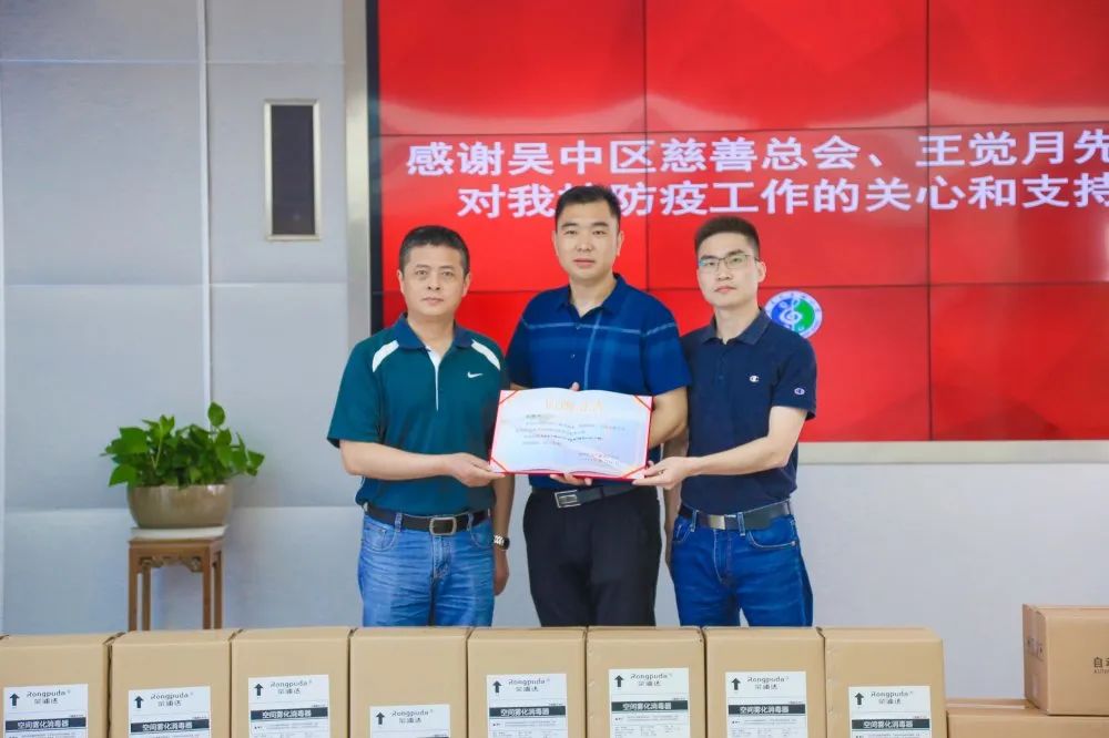 2020年5月13日,苏州市吴中区慈善总会、苏州荣浦达环保智能科技有限公司王黎明、王觉月先生一行向东湖小学校捐赠自动洗手消毒机、消毒液等防疫物资。东湖小学校长蒋欣,代表学校参加了捐赠仪式,并对慈善总会和苏州荣浦达环保智能科技有限公司表示衷心的感谢!